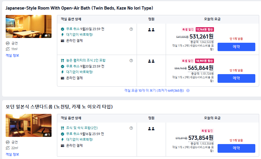 유명하거나 교통이 편리한 곳들은 이미 객실내 온천이 있는 객실은 마감이고