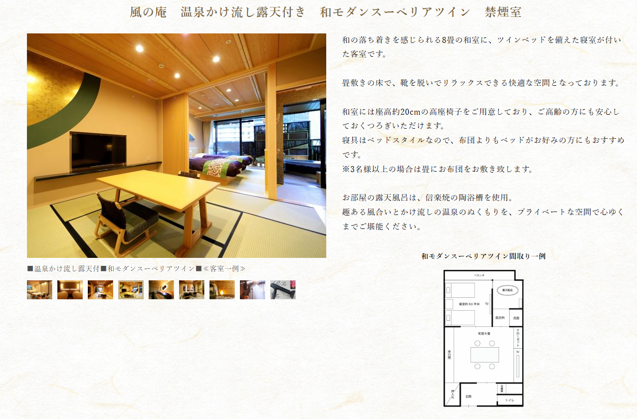✔️객실 주요 시설 : 싱글 침대 2, 다다미에 이불 침구 세트 2인(최대 4인까지 투숙 가능), 노천탕, 금연실